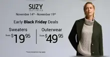 Designed for dynamic women, Suzy Shier showcases clothing for every occasion - from careerwear that means business to activewear that's right on the edge. From top to bottom we have what you need to pull together your office and weekend look at unbelievable prices. With over 170 locations across the country and 40 years in business, Suzy Shier is one of Canada's leading women's fashion retailers.